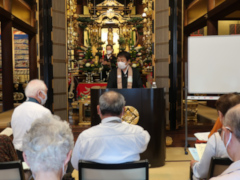 最後の「御礼言上」で、今まで広島県庄原市よりオンラインで河村和也総代(県立広島大学教授、法名:釋和誠)が言っていましたが、今年は4年ぶりに参詣され、蓮光寺門徒を代表して、ご講師、ご出仕のご僧侶に、御礼の言葉を述べていただきました。