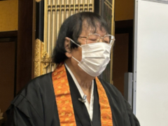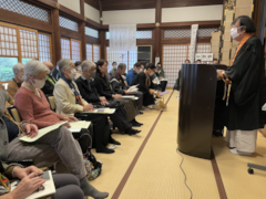 また、満日中の法要では、京都より畠中光享(はたなかこうきょう)先生にご出講いただき「生死(しょうじ)を超えること」の講題でご法話をたまわりました。