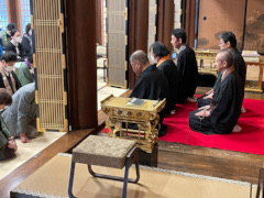 ご法中のみなさまにおかれましては、懇ろなるお勤めを賜りまことにありがとうございました。昨日・本日と、拙いながらお勤めをご一緒させていただき、当派に伝わる声明の伝統の重みをあらためて感じたことでございます。
