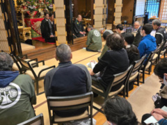 2日(日)の「晨朝法話」は門徒感話2名で、衆徒の本多聡さんとご門徒の笠原重夫さんに、報恩講に身を置いた喜び、つながりの大切さを語っていただきました。